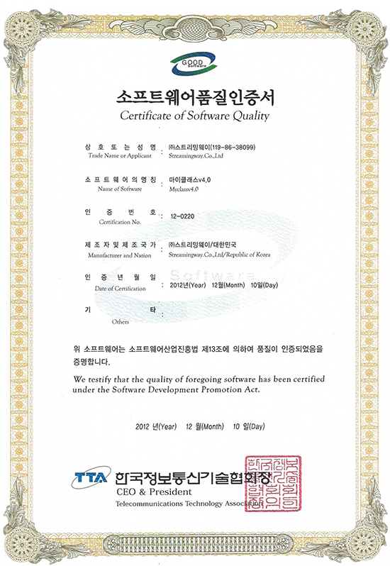 인증 내역 : 스마트러닝 마이클래스 TTA GS인증 획득